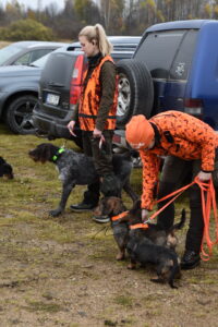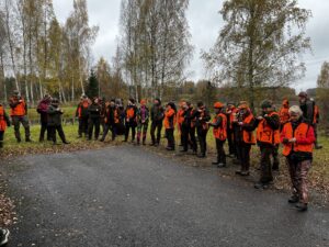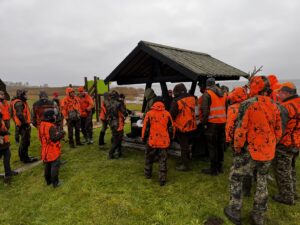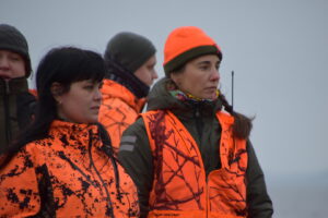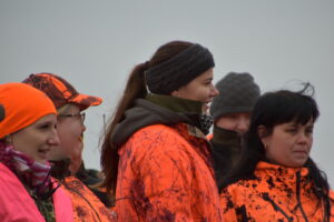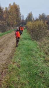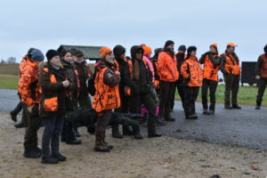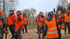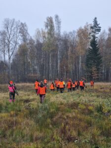 Alanud sügisesel ühisjahihooajal kutsusime kõiki jahinaisi üle Eesti osalema “jahis ainult naised 2025” suurulukijahil Põlva Jahiseltsis, Mäe jahtkonnas! Sellel aastal oli plaanis lisaks põdrajahile ka teha ajujaht šaakalile. 25-nda oktoobri hommikul koguneski 25 jahinaist ja terve Mäe jahtkonna jahimehed, -jahinaised ning päev algas kohvi, võileibade ja tutvustamistega. Kui juba nimed nimekirja said, kogunesime õuele ning Aare Poolak tutvustas Mäe Jahtkonna kujunemislugu ning Madis Poolak tutvustas jahipäeva ülesehitust, reegleid, jahiohutust. Nagu ikka jagasid kohalikud jahimehed kütiliinid ära ning ka jahinaised juhatati positsioonidele. Kohe kui aju algas, hakkasid usinad taksid, Puru ja Barka, klähvima ja võtsid värske jälje üles. Natuke sebimist siia-sinna ajuliinis koertega ja esimesed põdrad jõudsid ka kütiliini. Esimese põdra pihta tegi lasu jahinaine Juulia, sai pihta ja põdrapull kukkus, siiski loom tõusis ja liikus edasi. Ka jahinaine Agnese eest käis haavatud loom läbi ning naisel õnnestus sooritada lask, põder liikus võsa vahele. Vahepeal oli tulnud ka veel üks kütitav loom Juulia ette. Sedakorda läks õnneks ja loom sai kütitud. Kui ajajad jõudsid kütiliini, organiseerisid koeramhed kohe verejälje otsingu ning taksid võtsid hoobilt verejälje üles. Haukusid ja jooksid, siiski jäid nad üsna tõenäoliselt loomast tunduvalt maha ning kohale jõudnud ida-siberi laika sai jätkata takside alustatud tööd. Kuigi oli ka omajagu segadust, sest vahepeal nähti seakarja, kes tuli üllatusena selles ajus ning hetkeks jäi mulje, et laika võttis hoopis seakarja ette. Kütid seati ümber järgmiste metsade ja ülejooksudele ning kui laika ikkagi põdrpulliga esimese küti eest läbi käis, oli selge, et laika ajab õiget looma. Kui juba koer otsitud põdrapulli täpse käega kütt Mihklile ette lükkas ja too eduka lasuga looma küttis, olid jahimehed rahul -kõik läks nii nagu pidi, koer sai kiita (mõne kena seibi suitsuvorstigi) ja päev läks edasi.