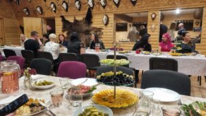 Õhtuse peo korraldas sedakorda jahiselts ise Jahinaistele. Peol jagati muljeid, räägiti maja ajaloost, tunnustati kütte, tänati kohalikke jahimehi ning anti üle kroon Jahikuningannale, Tairele, kes küttis suure põdrapulli. Päev oli emotsiooniderikkas ja samas väga koduse loomuga. Kohalikud jahimehed võtsid päeva kujunemist väga orgaaniliselt ning kõik jooksis rahulikult ja sujuvalt paika. Jahinaised olid väga tänulikud kohaliku seltsi külalislahkuse eest ja kindlasti kohtume veel!